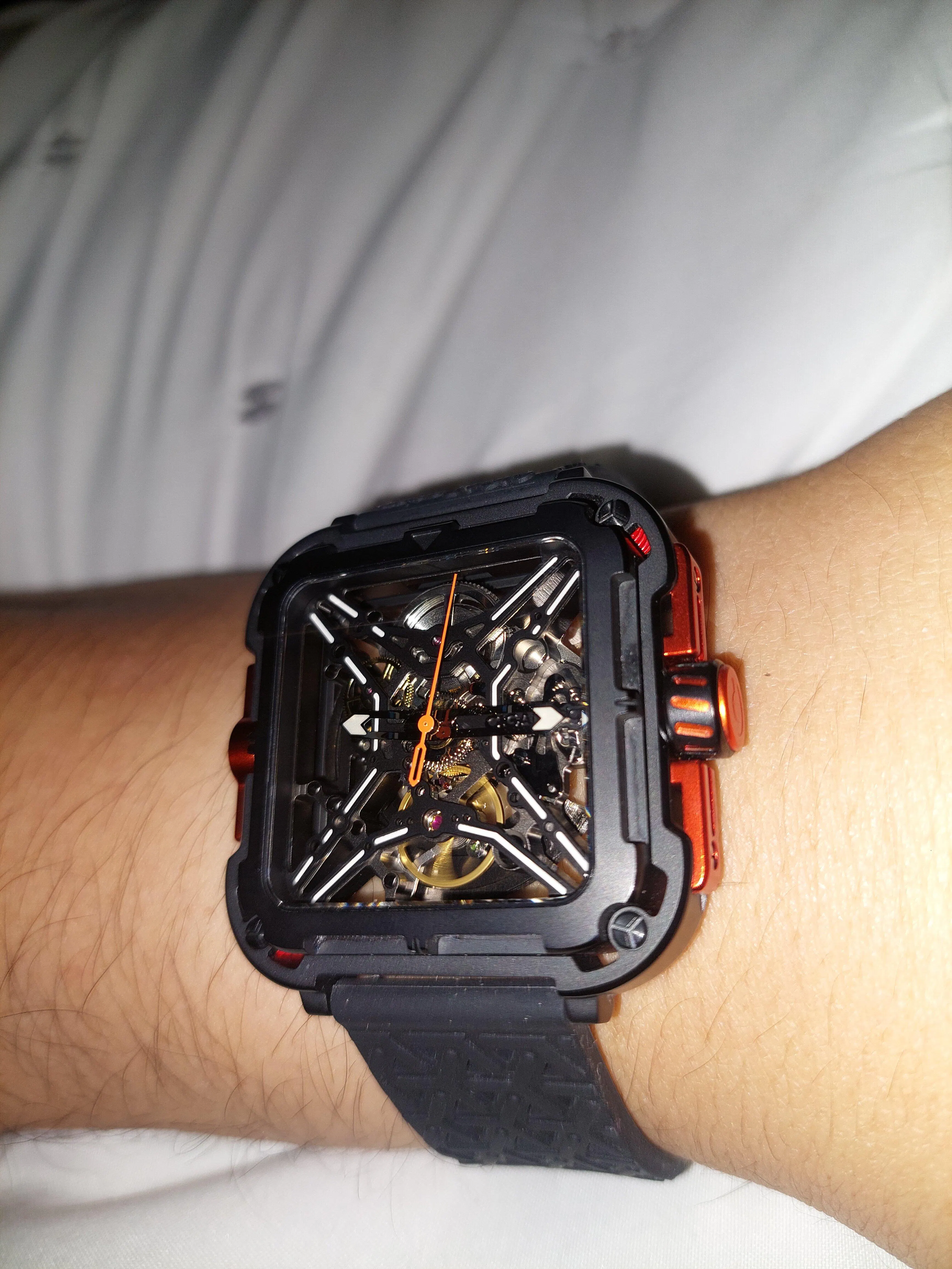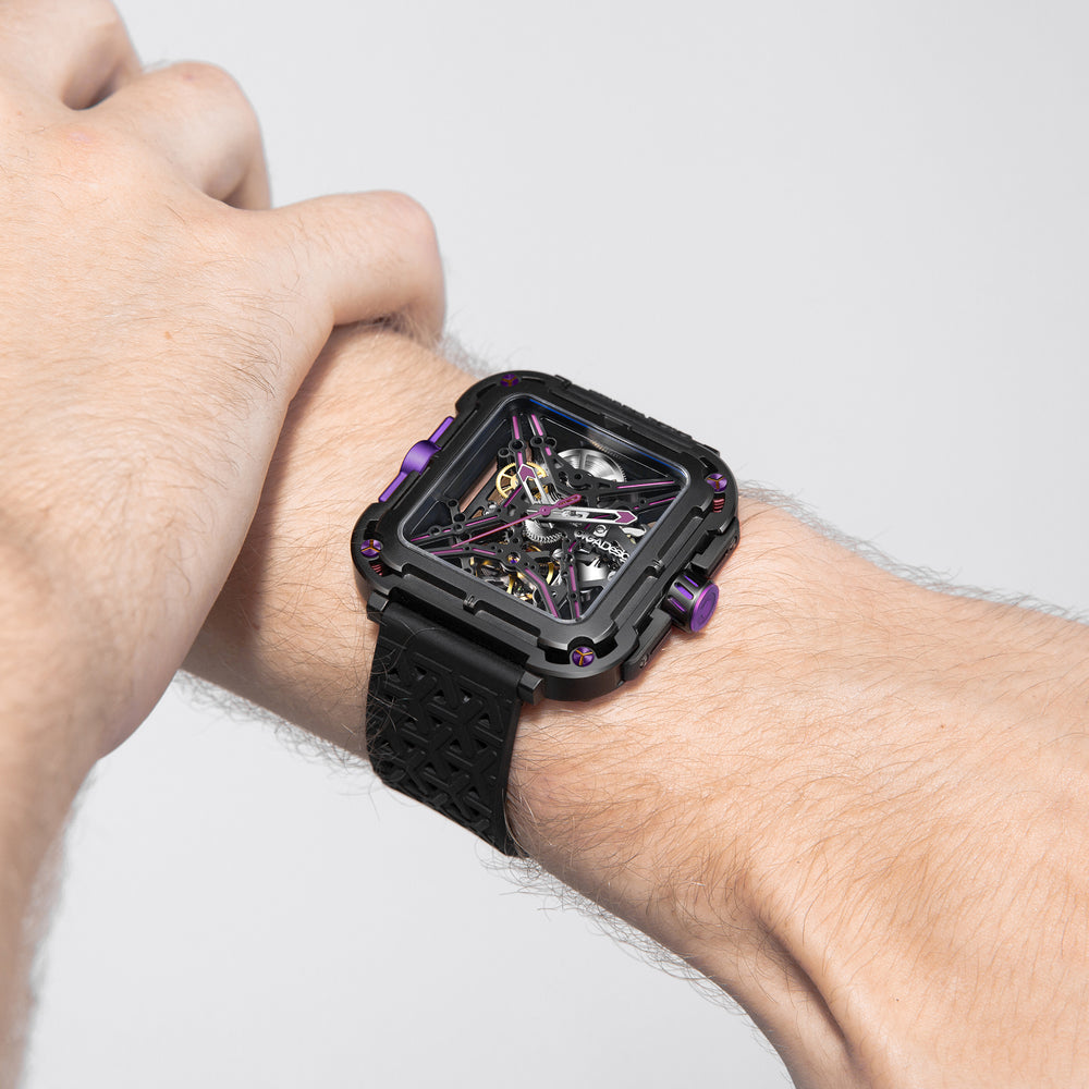 Inspirado en la fortaleza y sabiduría del gorila, esta pieza presenta un diseño robusto pero refinado, con una carátula esqueleto en forma de X y un sistema de suspensión en cuatro esquinas.