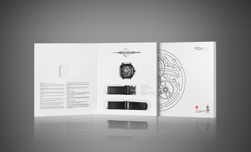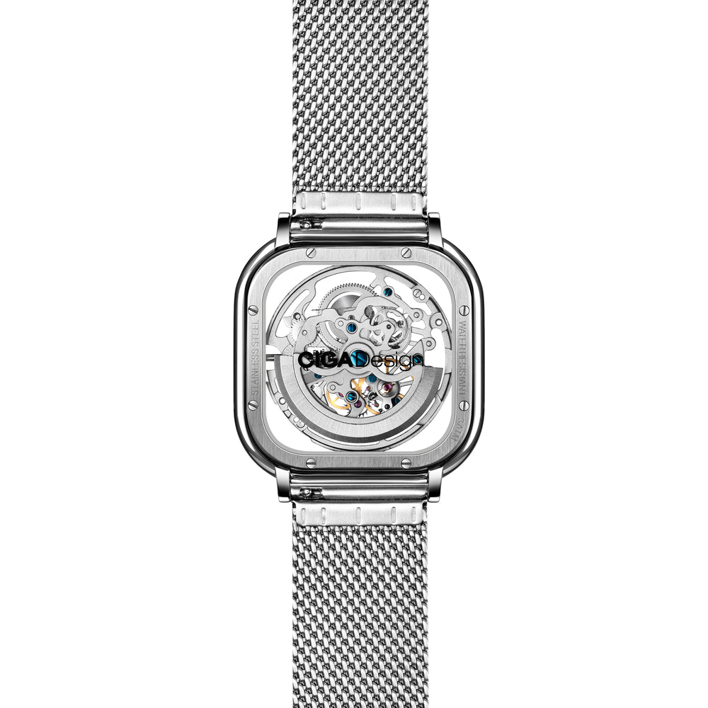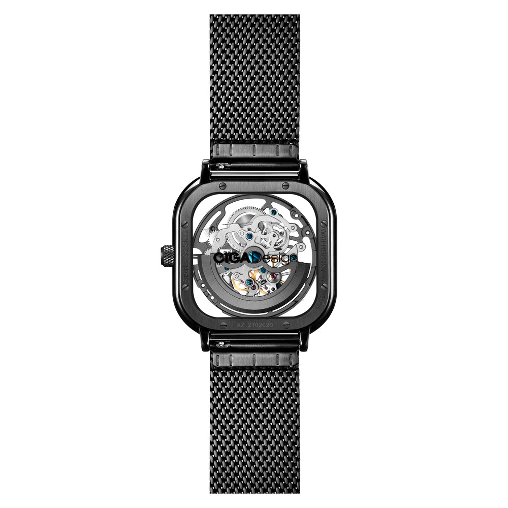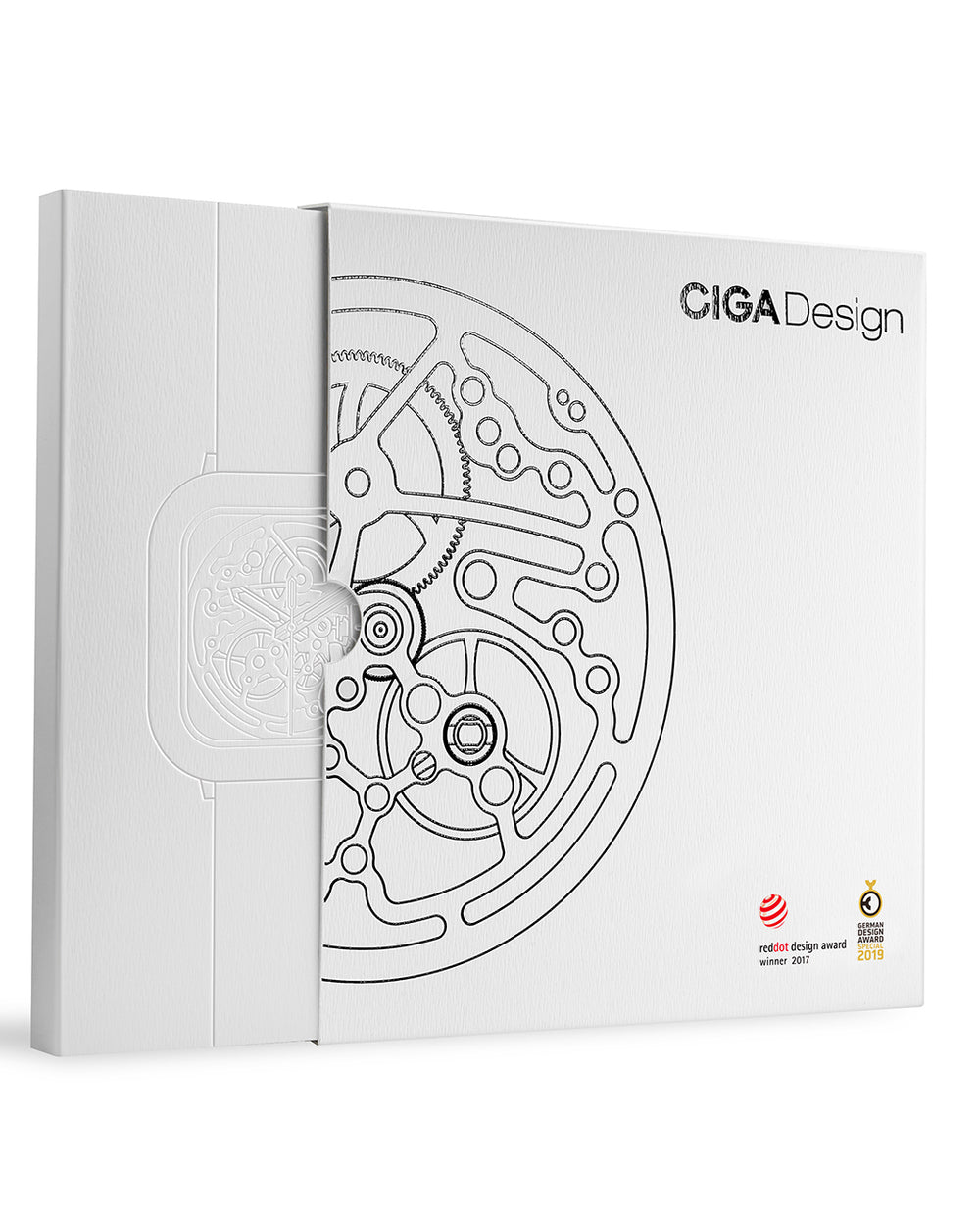 Movimiento personalizado – Movimiento automático SEAGULL de clase AAA, frecuencia de 21,600 vibraciones por hora, 19 rubíes y una reserva de marcha de hasta 40 horas. Personalizado por CIGA Design, cada mecanismo pasa por cuatro pruebas rigurosas, aportando un aire de misterio y precisión a su funcionamiento.